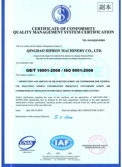 質(zhì)量認證證書