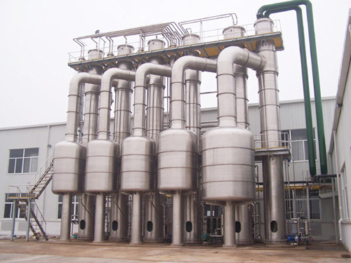 各效蒸發(fā)器、各效分離器、冷凝器、熱壓泵、真空及排水系統(tǒng)、各效料液輸送泵、操作平臺(tái)、電器儀表控制柜及閥門(mén)、管路等系統(tǒng)組成。
